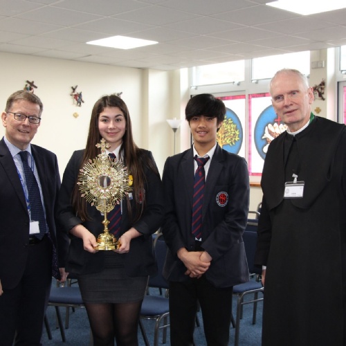 On Tuesday, 19th March Father Leo from Downside presented the Monstrance to Mr Maher and St. Bede's.